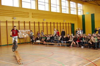Uczniowie gimnazjów uczestniczyli również w otwartych zajęciach sportowych na sali gimnastycznej, gdzie mogli spróbować swych sił w rzutkach, tenisie stołowym, sprawdzić siłę przedramienia na dynamometrze czy w treningu bokserskim. Obejrzeli tez pokaz jazdy na rowerze BMX.