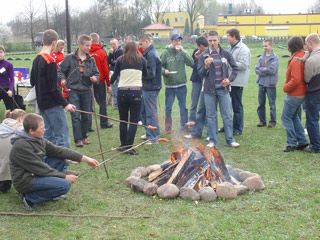 Dzień Otwartych Drzwi zakończyło zorganizowane przez Szkolne Koło Turystyczne ognisko dla gimnazjalistów i ich opiekunów połączone z prezentacją działalności Koła.