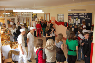 Uczniowie naszej szkoły zorganizowali też stoisko piekarnicze, gdzie gimnazjaliści otrzymywali ciastka z niespodzianką, pieczywo itp. Ponadto przez cały dzień działał salon fryzjerski, gdzie goście mogli zmienić swoja dotychczasowa fryzurę.