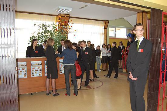 Przybyłych gimnazjalistów i ich opiekunów witała Pani dyr. Iwona Matysiak zapraszając do zwiedzenia placówki, po której każdą z przybyłych grup oprowadzali obecni uczniowie ZSP z klas technikum hotelarskiego, przedstawiając placówkę, jej bazę dydaktyczną, w tym nowo powstałą pracownię gastronomiczno-hotelarską.