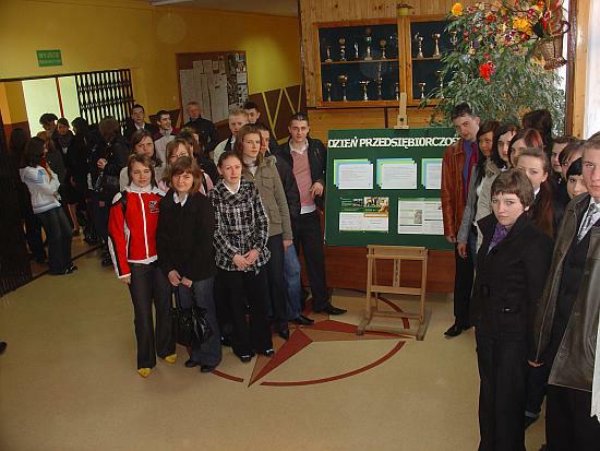 W dniu 2 kwietnia 2009r. uczniowie Zespołu Szkół Ponadgimnazjalnych wzięli udział w ogólnopolskim programie "Dzień Przedsiębiorczości", organizowanym przez Fundację Młodzieżowej Przedsiębiorczości we współpracy z Kancelarią Prezydenta RP.Udział w programie polegał na odbyciu jednodniowej praktyki, w trakcie której uczniowie zapoznawali się z wybranymi stanowiskami pracy, zakresem obowiązków, poznawali obowiązujące zasady pracy, wykonywali zadania pod kierunkiem opiekunów- konsultantów.