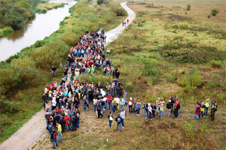 Trasa rajdu była urozmaicona. Po odprawie na boisku szkolnym wyruszyliśmy ulicą Krakowską pod Starostwo Powiatowe, gdzie do nas dołączyły klasy z LO. Dzięki pomocy Policji bezpiecznie przeszliśmy stary most na Pilicy (piękny!) a następnie dotarliśmy do nowego mostu. Było nas dużo! Około 350 osób! Gdy jedni schodzili już z mostu to inni dopiero na niego wchodzili. Na łące odbyły się konkursy. Następnie przez lasy i pola dotarliśmy do naszej Szkoły gdzie czekało już rozpalone ognisko. Na zakończenie rajdu Pani v-ce Dyrektor Renata Korczak i opiekunka Szkolnego Koła Krajoznawczo-Turystycznego pani Wioletta Ziemnicka wręczyły zwycięzcom konkursów dyplomy i nagrody ufundowane przez Radę Rodziców.