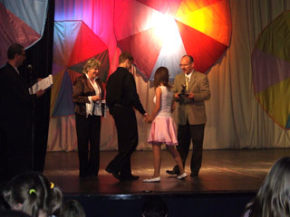 Wręczenie nagród i statuetek przebiegało w bardzo miłej atmosferze, wszyscy byli rozpromienieni i spokojni, przecież tym razem nikt nikogo nie oceniał, ale chwalił uzdolnioną młodzież. Statuetkę "pary tanecznej” za zajęcie I miejsca odebrała Sylwia Sąpor i Dawid Nowak, jako nagrodę dodatkową zespół otrzymał – „Wielką Księgę Faktów”, którą po przyjeździe przekazali w darze do Biblioteki Szkolnej.