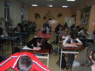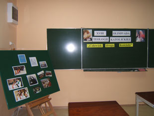 W dniu 7 stycznia 2008r. odbyła się XVIII Olimpiada Teologii Katolickiej - etap szkolny. Tematem przewodnim tegorocznej Olimpiady jest hasło "Człowiek drogą Kościoła". W olimpiadzie wzięło udział 42 uczniów, w tym 4 z klas zawodowych. Temat Olimpiady nawiązuje do słów Sługi Bożego Jana Pawła II, zawartych w jego pierwszej encyklice "Redemptor hominis" ("Odkupiciel człowieka"). "Człowiek (...) jest pierwszą i podstawową drogą Kościoła (...). Dlatego usprawiedliwiona jest troska Kościoła o to, aby życie ludzkie stawało się coraz bardziej ludzkie, aby wszystko, co na to życie się składa, odpowiadało prawdziwej godności człowieka... Sytuacja w świecie współczesnym daleka jest bowiem od wymagań porządku moralnego, sprawiedliwości i miłości społecznej - człowiek coraz bardziej bytuje w lęku" (NR.15). Stąd celem Olimpiady jest poznanie prawdy o człowieku stworzonym przez Boga, a odkupionym przez Jezusa Chrystusa; a także kształtowanie umiejętności rozpoznania i moralnej oceny współczesnych zagrożeń ludzkiej godności. Uczniowie przygotowujący się do testu zapoznawali się głównie z tekstami Karola Wojtyły - fragmentami Jego "Elementarza Etycznego", Encykliki "Redemptor Hominis" (którą napisał już jako Papież JP II ), z treściami Katechizmu Kościoła Katolickiego i z Kompendium Nauki Społecznej Kościoła.