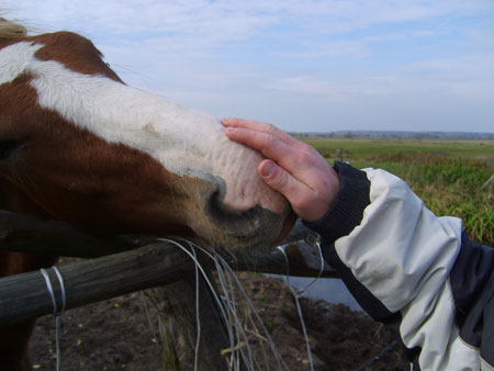 · Głaskaliśmy konie. Jeden zasmakował we włosach Martyny.