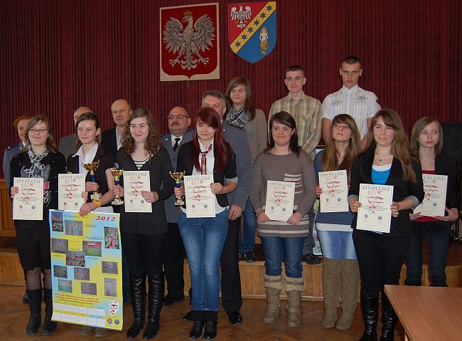 Wśród nagrodzonych osób znaleźli się nasi uczniowie: III miejsce zajęła Róża Szweda - uczennica z klasy I TI, która otrzymała dyplom i puchar ufundowany przez Starostę Białobrzeskiego Andrzeja Oziębło, a wyróżnienie otrzymał Adrian Popiel – uczeń z klasy I TLp „A”.