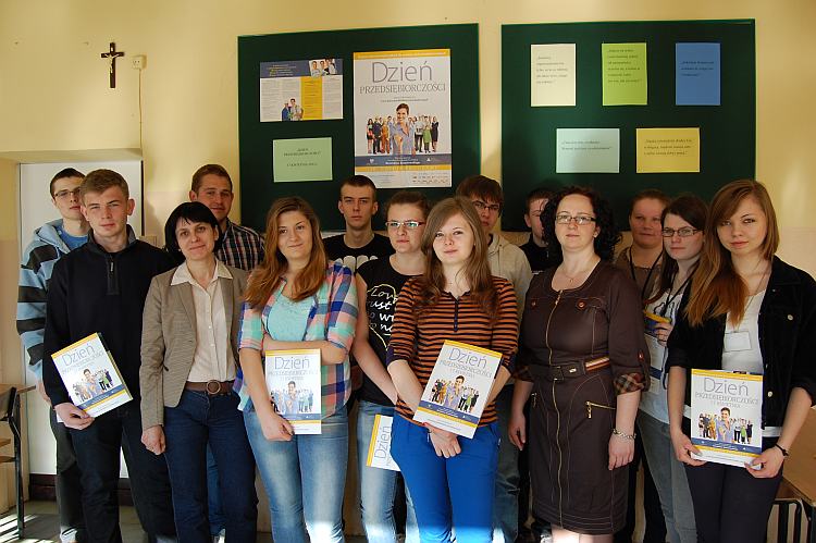 W dniu 17 kwietnia 2013r. 13 uczniów naszej szkoły, z klasy II Technikum w zawodzie technik ekonomista, wzięło udział w ogólnopolskim programie "Dzień Przedsiębiorczości", organizowanym przez Fundację Młodzieżowej Przedsiębiorczości we współpracy z Kancelarią Prezydenta RP.