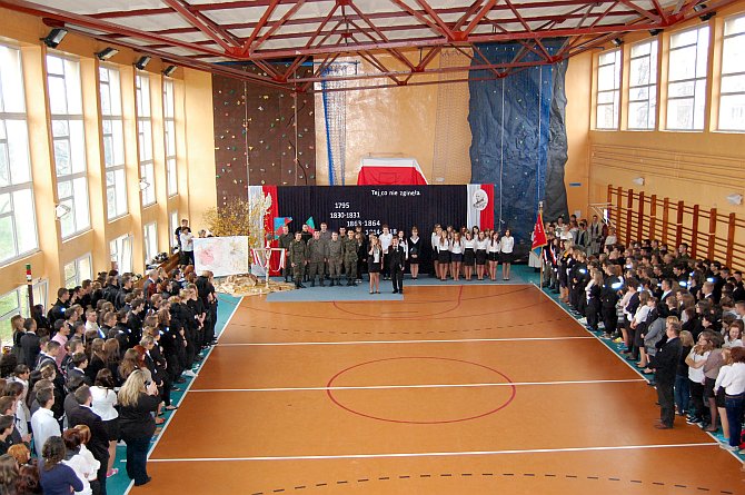 "Tej, co nie zginęła..." - pod takim hasłem 9 listopada 2012r. odbył się uroczysty apel z okazji 94 rocznicy odzyskania przez Polskę niepodległości. ....Brzozowe krzyże, stary zniszczony hełm, zapalone znicze - to wymowna, symboliczna dekoracja będąca tłem do montażu poetycko-muzycznego przygotowanego przez młodzież Zespołu Szkół Ponadgimnazjalnych im. Stanisława Staszica w Białobrzegach. Była patriotyczna poezja, marszowe i nastrojowe pieśni - całość apelu wzruszała, rozbudzała refleksje, zaciekawiała i przybliżała naszą historię. A historię Polska miała piękną, choć burzliwą i trudną. Magia inscenizacji pozwoliła współczesnemu odbiorcy zrozumieć i docenić ogrom poświęceń naszego narodu w walce o jego wyzwolenie. Niezapomnianych przeżyć dostarczyło wykonanie pieśni pt. "Mury" Jacka Kaczmarskiego.Program artystyczny przygotowała młodzież pod kierunkiem nauczycieli: Marii Siurnik, Moniki Śliwy i Jarosława Jarząbka. Nad oprawą muzyczną czuwała pani Grażyna Gospodarczyk. Na zakończenie apelu w radosny nastrój wprowadziły nas dźwięki mazura - tańca przygotowanego przez szkolny zespół MISZ-MASZ pod kierunkiem Małgorzaty Nowak.