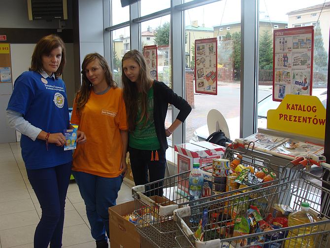 Planowana zbiórka w wielu sklepach pod opieką wolontariuszy, jak zawsze daje ogromne efekty. Na terenie naszego miasta zbiórkę prowadzili uczniowie naszej szkoły w dwóch dużych sklepach : TOPAZ i nowootwartym TESCO.