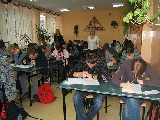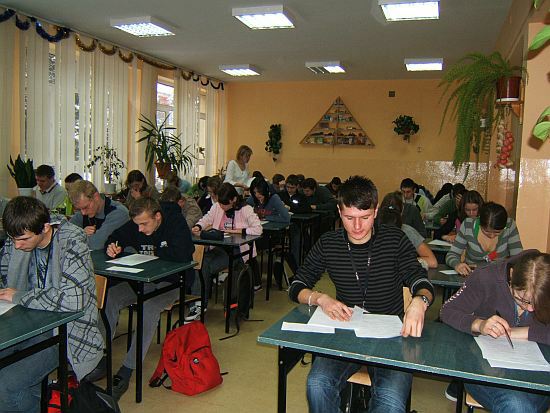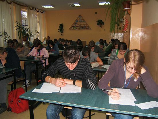W dniu 19 lutego 2009r. w naszej szkole odbył się I etap międzyszkolnego konkursu SKARABEUSZ z informatyki, fizyki i matematyki pod patronatem Mazowieckiego Kuratora Oświaty, firmy CISCO, Sygnity, Polsko-Japońskiej Wyższej Szkoły Technik Komputerowych przeznaczony dla uczniów szkół ponadgimnazjalnych. Do konkursu przystąpiło 37 uczniów naszej szkoły z 14 klas Liceum Profilowanego, Technikum oraz Zasadniczej Szkoły Zawodowej. Uczestnicy konkursu rozwiązywali test pod nadzorem komisji szkolnej, w której skład wchodzili: pani Dyrektor Renata Korczak, pani Marzena Górska - organizator etapu szkolnego, pani Wioletta Ziemnicka, pani Katarzyna Podpora. Test zawierał 27 pytań z fizyki, matematyki i informatyki o różnym stopniu trudności do rozwiązania w ciągu w ciągu 45 minut.Celem konkursu jest: