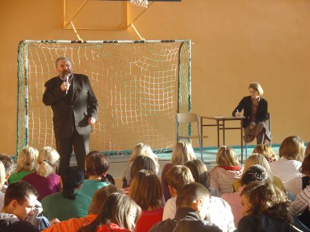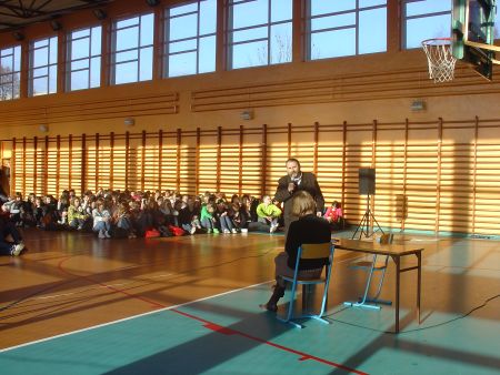 W dniu 9 grudnia 2008r. uczniowie klas maturalnych naszej szkoły obejrzeli spektakl Teatru Lektur Szkolnych pt. "Zdążyć przed Panem Bogiem" będący adaptacją sceniczną książki Hanny Krall. Wystąpili artyści : Lech Sulimierski i Karolina Stańczak. Scenarzystą i reżyserem spektaklu jest Marek Tercz - poeta, pieśniarz i kompozytor, adaptor i autor sztuk teatralnych."Zdążyć przed Panem Bogiem" Hanny Krall to opis wywiadu z doktorem Edelmanem - znanym kardiochirurgiem, który w czasie powstania w getcie warszawskim był zastępcą komendanta Żydowskiej Organizacji Bojowej. W rozmowie tej Edelman przedstawia getto takim, jakim było rzeczywiście. Mówi o ludziach, którzy tysiącami tłoczyli się, aby dostać się do transportu do Treblinki, a także o garstce młodych i niedoświadczonych ludzi, którzy nie chcieli zginąć w gazie i rozpoczęli beznadziejną walkę z przeważającymi siłami okupanta. Edelman mówi zarówno o tych, którzy w obliczu klęski popełniali samobójstwa, jak i o tych, którzy walczyli z poświęceniem i oddawali życie, aby inni mogli przeżyć i powiedzieć prawdę o tamtych tragicznych czasach. Życie wewnątrz getta cały czas było wyborem pomiędzy życiem a śmiercią. Nikt z tych ludzi nie był pewien tego, czy przeżyje kolejny dzień. Toczyli oni beznadziejną walkę po to, aby zwrócić uwagę świata na los żydów, oraz aby zginąć godnie z bronią w ręku. Jest to poruszający opis getta od strony Żydów walczących i ginących w tej szczelnie zamkniętej części miasta. Hanna Krall porusza problemy egzystencjonalne, przez pytania o wartość życia i śmierci ludzkiej w różnych sytuacjach. Duże wrażenie wywiera heroizm ginących Żydów, pragnących pokazać światu, że potrafią godnie umierać jak inni ludzie. Edelman po doświadczeniach wojennych za nadrzędną wartość uważa życie drugiego człowieka i odpowiedzialność za niego. Proza polska dogłębnie przedstawia więc problem doświadczenia holokaustu i hitlerowskich obozów śmierci.
