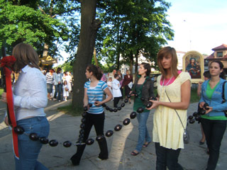 Kościół parafialny w Białobrzegach pod wezwaniem Trójcy Świętej obchodzi jubileusz 50-lecia. Młodzież naszej szkoły bardzo chętnie włączyła się już w rozpoczęte obchody. Brała udział w „Jubileuszowej Drodze Krzyżowej”, a na zakończenie oktawy Bożego Ciała wyręczyła starsze pokolenie czynnie uczestnicząc w procesji. Patrząc na młodych ludzi niosących feretrony, obrazy i baldachim ksiądz proboszcz z dumą myślał o przyszłości, że nie zabraknie świadków wiary, a my pedagodzy możemy powtórzyć przysłowie, że młodzież naszej szkoły jest „do tańca i do różańca”.
