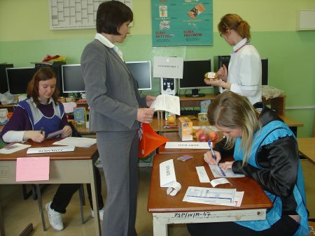 Uczniowie wykonywali poszczególne etapy zadania egzaminacyjnego tzn. planowali podejmowane działania, organizowali stanowiska sprzedażowe, obsługiwali klienta oraz prezentowali efekty podejmowanych przez siebie działań.