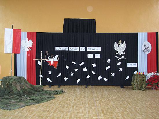 W dniu 12 listopada 2009r. odbyła się uroczysta akademia poświęcona 91 rocznicy odzyskania niepodległości, w której wzięła udział cała społeczność szkolna. Program artystyczny zatytułowany „Droga do niepodległości” rozpoczął się wymowną pantomimą, w której troje uczniów reprezentując państwa zaborcze: Rosję, Prusy i Austrię opuścili polską flagę kładąc na niej trzy orły – herby tych mocarstw, był to symbol dokonanych w XVIII wieku rozbiorów Polski.