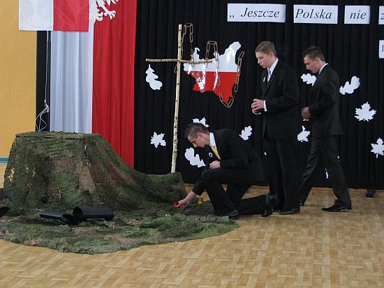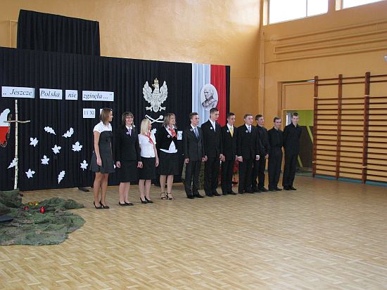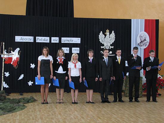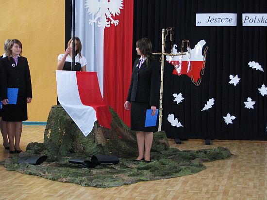 Po wysłuchaniu wzruszających wierszy zostały zrzucone orły zaborców i nasza flaga narodowa z powrotem została wciągnięta na maszt wyrażając radość z odzyskania niepodległości. Przedstawienie artystyczne zostało przygotowane pod kierunkiem nauczycieli: Anny Boczkowskiej, Jacka Reczko i Karola Waszkiewicza.