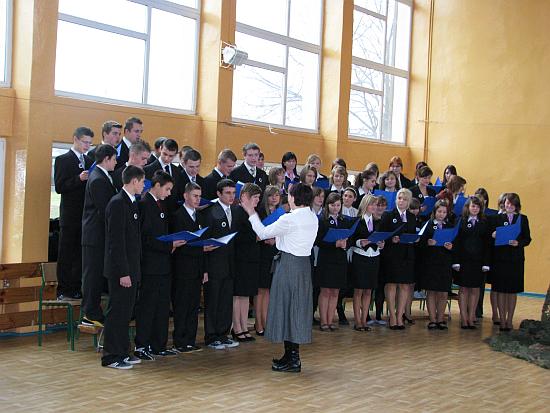 A pod kamieniem krwawi się wspomnienieTymi słowami poety - w dalszej części przedstawienia zostały zaprezentowane wiersze przeplatane pełnymi zadumy słowami komentatora - opisującego tło historyczne naszej drogi do niepodległości. Podczas krótkich przerw między komentarzem a poezją śpiewał szkolny chór kierowany przez Panią Annę Budner.