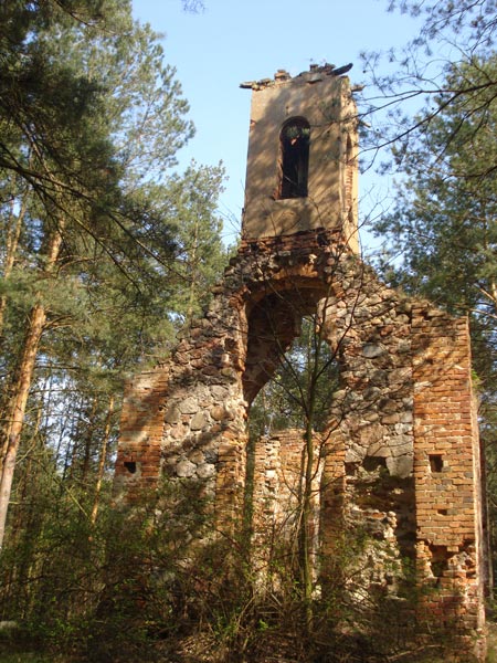 Fotografia Anny Sobień - ruiny XIX-wiecznej kapliczki w Smardzewie.
