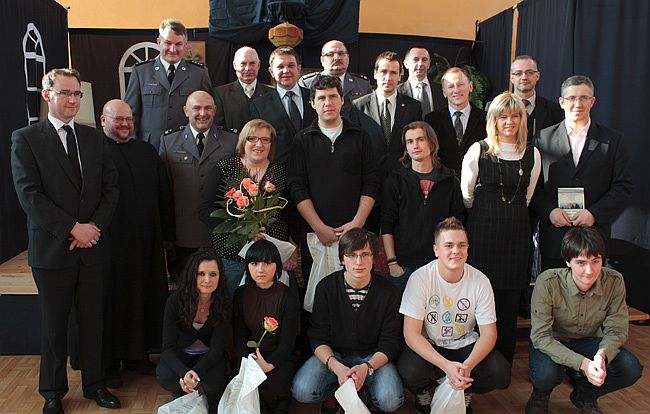 Inspektor Grzegorz Jach z Komendy Głównej w Warszawie, reżyser spektaklu i autor programu, wraz z grupą teatralną z Sokołowa Podlaskiego i Warszawy