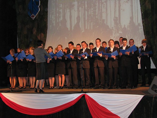 Zespół Śpiewaczy (z klasy III TA, II TH, I THA) wystąpił gościnnie i zaprezentował trzy utwory: „Warszawiankę”, „Ułani, ułani” oraz „Modlitwę obozową”.