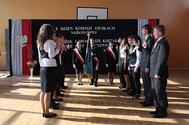 13 października w naszej szkole odbyła się akademia z okazji Święta Edukacji Narodowej. Uroczystość rozpoczęła się wprowadzeniem sztandaru i uczczeniem minutą ciszy ofiar wypadku pod Nowym Miastem nad Pilicą. W uroczystości wzięli udział uczniowie, nauczyciele i pracownicy szkoły oraz zaproszeni goście: Ksiądz Proboszcz naszej parafii - Artur Hejda, Starosta Powiatu Białobrzeskiego - p. Andrzej Oziębło, Sekretarz Powiatu – p. Adam Bolek, p. Ryszard Komorowski – przedstawiciel Polskiego Centrum Badań i Certyfikacji S.A w Warszawie oraz p. Ewa Kokot – auditor i zastępca kierownika Zakładu Certyfikacji Systemów Zarządzania PCBC S.A., przewodniczący Rady Rodziców – p. Dariusz Kacperkiewicz oraz szczególnie ciepło przywitani pracownicy emerytowani.