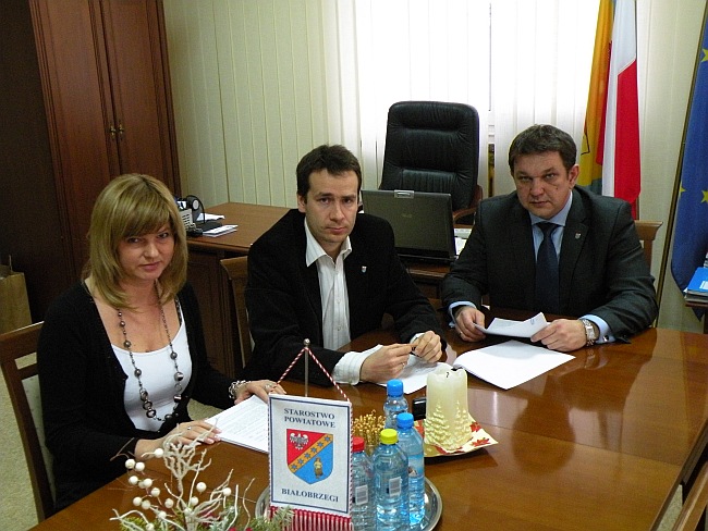 Umowę podpisali: Starosta Powiatu Białobrzeski – Andrzej Oziębło i Wicestarosta Powiatu – Adam Bolek