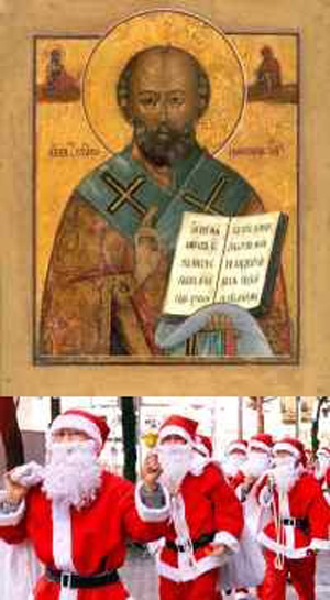 Mikołaj – urodzony około 280 r. w Patarze (dzisiejsza Turcja). Według podań odziedziczył po rodzicach ogromny majątek, a będąc księdzem nie mógł przywłaszczyć go sobie, dlatego chętnie dzielił się bogactwem z ubogimi i potrzebującymi. Mieszkańcy Mirry wybrali Mikołaja na swego Biskupa. A gdy w IV wieku Mirrę opanowali Arabowie, kupcom włoskim udało się zabrać jego relikwie i przewieźć do Barri w południowych Włoszech (gdzie spoczywają do dzisiaj). Z jego życiem związane są różne historie np. o trzech niesprawiedliwie uwięzionych oficerach uwolnionych za jego wstawiennictwem, o trzech ubogich pannach wydanych za mąż dzięki posagom, których Biskup Mikołaj dyskretnie dostarczył, o młodzieńcach uratowanych przez niego od wyroku śmierci. Biskup Mikołaj zasłynął także jako cudotwórca. Jeden z utopców statku wiozącego Biskupa do Jerozolimy miał zostać przez niego wskrzeszonym, wskrzesił także młodzieńców zabitych za nieuregulowanie rachunku za nocleg w gospodzie. Święty Biskup Mikołaj brał udział w Soborze w Nicei (na którym miał spoliczkować heretyka Ariusza – podają kroniki historyczne). Umarł 6 grudnia około 350 r. Do dziś utrzymuje się zwyczaj składania sobie podarków w formie niespodzianki właśnie 6 XII – w patronalne święto Świętego Mikołaja.