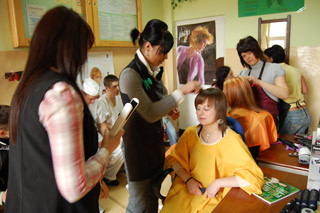 Uczniowie naszej szkoły zorganizowali też stoisko piekarnicze, gdzie gimnazjaliści otrzymywali ciastka z niespodzianką, pieczywo itp. Ponadto przez cały dzień działał salon fryzjerski, gdzie goście mogli zmienić swoja dotychczasowa fryzurę.