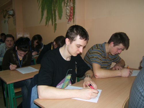 W dniu 27 marca 2009r. odbył się w naszej szkole konkurs wiedzy ogólnej, zorganizowany przez wychowawców świetlicy, do którego przystąpiło 51 uczniów z klas Liceum Profilowanego i Technikum. Uczniowie odpowiadali pisemnie na 50 pytań, przygotowanych przez organizatorów i nauczycieli przedmiotów takich jak: język polski, matematyka, biologia, geografia, religia, historia. Celem niniejszego konkursu było propagowanie i poszerzenie wiedzy ogólnej. Nad przebiegiem konkursu czuwała komisja w składzie: Elżbieta Michalak, Krystyna Kozłowska i Anna Boczkowska.