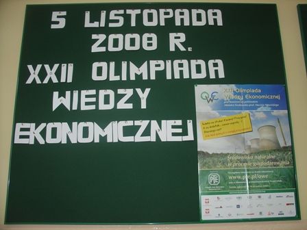 W dniu 5 listopada 2008r. odbył się XXII etap szkolny Olimpiady Wiedzy Ekonomicznej, organizowanej przez Polskie Towarzystwo Ekonomiczne. Hasłem przewodnim Olimpiady jest „środowisko naturalne w procesie gospodarowania”.