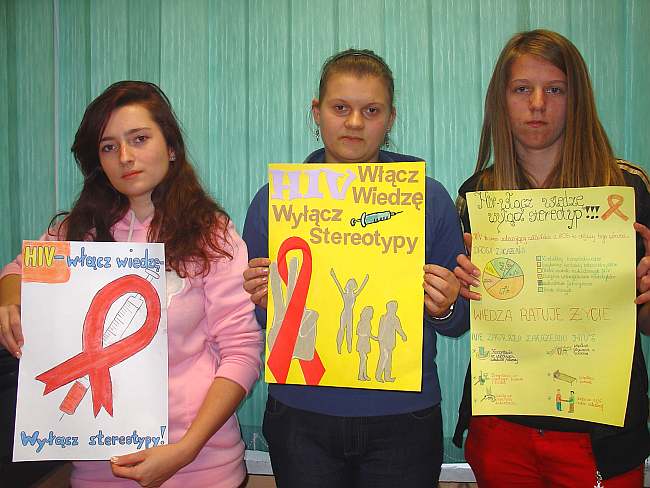 W dniu 15 listopada 2011 r. został rozstrzygnięty etap szkolny konkursu pod hasłem „HIV – Włącz wiedzę – wyłącz stereotypy”. Celem było uświadomienie młodym ludziom zagrożeń związanych z HIV/AIDS, promowanie postaw odpowiedzialności za własne życie oraz szacunku wobec siebie i innych. Uczniowie wykonali plakaty promujące profilaktykę HIV, które oceniła komisja w składzie: p. Jolanta Babik, p. Elżbieta Michalak oraz pielęgniarka szkolna p. Janina Kosobudzka przyznając następujące miejsca:
