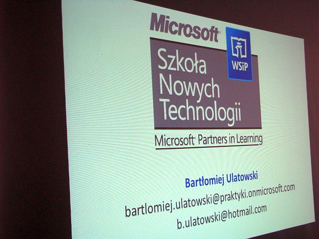 W dniu 27 lutego 2012r. uczniowie klas informatycznych uczestniczyli w szkoleniu - wykładach i prezentacjach przeprowadzonych przez trenerów firmy Microsoft w ramach ogólnopolskiego projektu „Szkoła Nowych Technologii”. Do projektu w naszej szkole przystąpiło 95 uczniów Technikum Informatycznego oraz 31 nauczycieli różnych przedmiotów. Projekt „Szkoła Nowych Technologii” jest częścią międzynarodowego programu Microsoft Partners in Learning, znanego w Polsce pod nazwą Partnerstwo dla przyszłości. Organizatorami projektu są: firma Microsoft oraz Wydawnictwa Szkolne i Pedagogiczne. Szkolenie skierowane do uczniów dotyczyło najnowszych technologii takich, jak: programowanie Windows Phone7, tworzenie stron internetowych, HTML 5, usługi Windows Live, programowanie Microsoft Kinect.