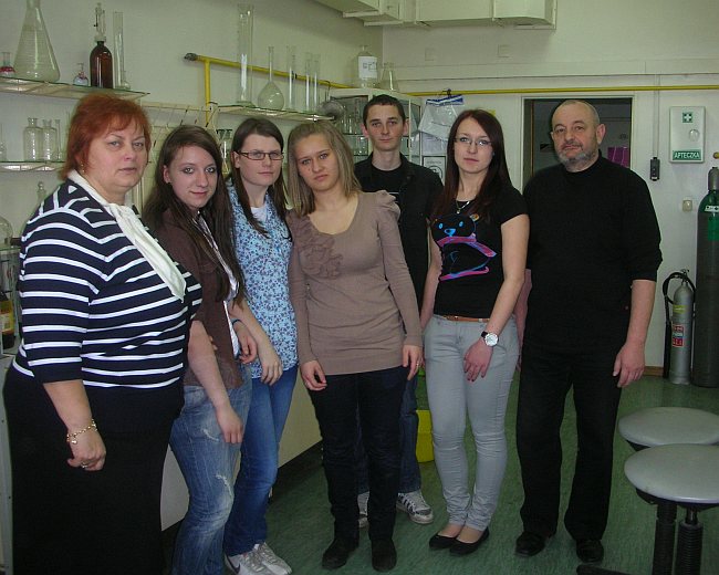 Pięcioro uczniów z naszej szkoły : Olga Banasiewicz z klasy I TOUG, Angelika Wieteska z klasy I TOUG, Greta Ciechowicz z klasy I TEH, Sylwia Mastalerz klasy I TEH, Jarosław Piotrowski z klasy I TL w-s wraz z panią Marleną Stolarczyk uczestniczy w projekcie Politechniki Radomskiej -,,Uczniowie poznają chemię poprzez jej zastosowanie, rozwiązywanie problemów i wizualizacje” – projekt współfinansowany ze środków Unii Europejskiej w ramach Europejskiego Funduszu Społecznego. W ramach tej współpracy na Wydziale Materiałoznawstwa, Technologii i Wzornictwa Politechniki Radomskiej odbyły się dwa razy zajęcia laboratoryjne, w których uczestniczyli uczniowie naszej szkoły, a zajęcia prowadził dr Janusz Szczerba. Na pierwszych zajęciach 22 kwietnia 2012r. badaliśmy próbki wody pochodzącej z różnych źródeł, natomiast na zajęciach 15 maja 2012r. uczyliśmy się ważenia, pipetowania oraz wykonywaliśmy miareczkowanie. Zajęcia są bardzo przydatne, gdyż możemy sprawdzić swoja wiedzę chemiczną w praktyce oraz nauczyć się posługiwania sprzętem laboratoryjnym. Następne zajęcia już w czerwcu.