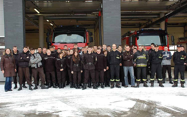 W dniu 14 marca 2013r. uczniowie klas strażackich i grupa z klasy policyjnej Technikum Logistycznego, pod opieką p. Krzysztofa Harwackiego i p. Katarzyny Gołębiowskiej wzięli udział w zajęciach zorganizowanych w Jednostce Ratowniczo-Gaśniczej Państwowej Straży Pożarnej w Radomiu. Spotkanie ze strażakami rozpoczęliśmy od zwiedzenia izby pamięci, w której obejrzeliśmy eksponaty dokumentujące bogatą historię placówki. Głównym celem wizyty był udział w pokazach przygotowanych dla uczniów. Strażacy pełniący służbę w Jednostce zademonstrowali wozy gaśnicze ratownictwa technicznego i ich wyposażenie, a także zapoznali nas ze specyfiką pracy sekcji nurków i sprzętem, który wykorzystują oni w czasie akcji. Uczniowie zwiedzili też Powiatowe Stanowisko Kierowania, gdzie mogli zaobserwować, jak wygląda przyjmowanie zlecenia i wydawanie dyspozycji poszczególnym służbom przez dowódcę akcji ratowniczej oraz „podglądali” dyspozytorów przyjmujących zgłoszenia pod numerem alarmowym 112.