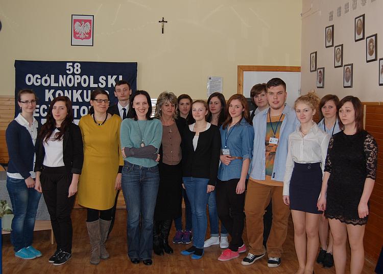 Tradycyjnie już na przełomie lutego i marca organizujemy w naszej szkole wewnętrzny etap Ogólnopolskiego Konkursu Recytatorskiego. 11 marca 2013r. o godz. 1235 w sali 61 mieliśmy okazję wysłuchać młodych recytatorów. Konkurs otworzyła pani Dyrektor Iwona Matysiak, która zachęciła młodzież do indywidualnego rozwoju własnych talentów literackich. Recytacjom przysłuchiwało się szanowne jury w składzie: Dyrektor Iwona Matysiak z-ca Dyrektora pani Jolanta Babik, polonistki – Katarzyna Rdzanek, Maria Siurnik, Monika Śliwa. Refleksyjną atmosferę konkursu dopełnił mini-recital własnej twórczości Kariny Widery I TŻiUGi i Róży Szwedy z II TI . Ciekawa oprawa plastyczno – muzyczna, utwory Leonarda Cohena oraz niezawodni konferansjerzy: Maciej Czyżo kl. III TL p, Martyna Kochańska kl. III LP ZI-EA, Małgorzata Pielaszek kl. I TEH – stworzyło ciekawy nastrój występów. Po wysłuchaniu ośmiu recytatorów jury do etapu powiatowego zakwalifikowało troje uczestników: