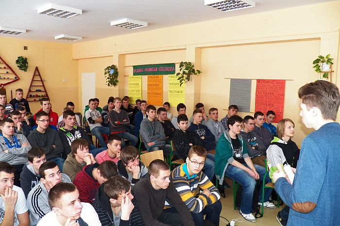 Spotkanie poprowadził pan Jakub Wachnicki - uprawniony do prowadzenia szkoleń z zakresu edukacji pro-zdrowotnej wśród młodzieży. Adresatami programu byli chłopcy w wieku 15-17 lat. Główny wątek dotyczył zagadnień związanych z higieną okresu dojrzewania, a w szczególności sposobów dbałości o skórę twarzy, głowy i zębów, golenia się oraz radzenia sobie z potliwością i jej konsekwencjami. W przystępny sposób wyjaśniono wpływ hormonów płciowych na stan skóry, twarzy oraz mechanizm powstawania wyprysków. Profesjonalizm prowadzącego sprawił, że uczniowie niezwykle aktywnie włączyli się w tok rozmowy.