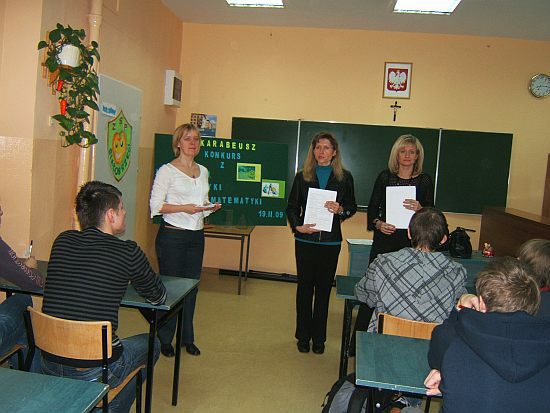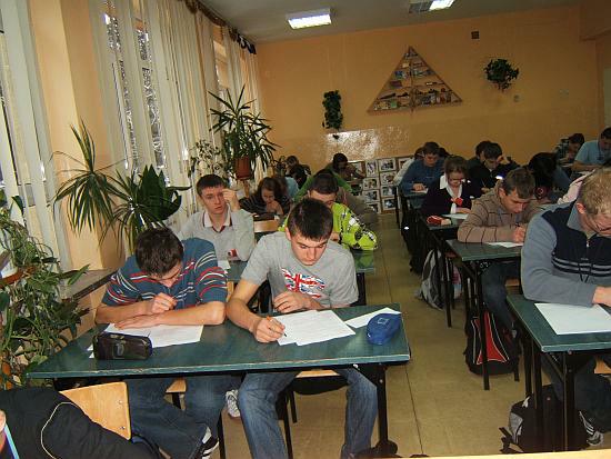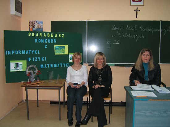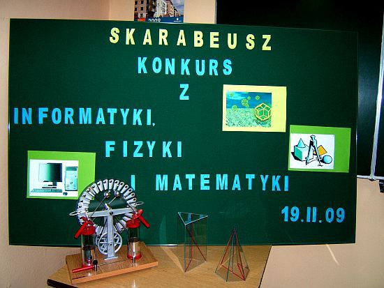 W dniu 19 lutego 2009r. w naszej szkole odbył się I etap międzyszkolnego konkursu SKARABEUSZ z informatyki, fizyki i matematyki pod patronatem Mazowieckiego Kuratora Oświaty, firmy CISCO, Sygnity, Polsko-Japońskiej Wyższej Szkoły Technik Komputerowych przeznaczony dla uczniów szkół ponadgimnazjalnych. Do konkursu przystąpiło 37 uczniów naszej szkoły z 14 klas Liceum Profilowanego, Technikum oraz Zasadniczej Szkoły Zawodowej. Uczestnicy konkursu rozwiązywali test pod nadzorem komisji szkolnej, w której skład wchodzili: pani Dyrektor Renata Korczak, pani Marzena Górska - organizator etapu szkolnego, pani Wioletta Ziemnicka, pani Katarzyna Podpora. Test zawierał 27 pytań z fizyki, matematyki i informatyki o różnym stopniu trudności do rozwiązania w ciągu w ciągu 45 minut.Celem konkursu jest: