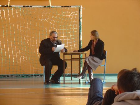 W dniu 9 grudnia 2008r. uczniowie klas maturalnych naszej szkoły obejrzeli spektakl Teatru Lektur Szkolnych pt. "Zdążyć przed Panem Bogiem" będący adaptacją sceniczną książki Hanny Krall. Wystąpili artyści : Lech Sulimierski i Karolina Stańczak. Scenarzystą i reżyserem spektaklu jest Marek Tercz - poeta, pieśniarz i kompozytor, adaptor i autor sztuk teatralnych."Zdążyć przed Panem Bogiem" Hanny Krall to opis wywiadu z doktorem Edelmanem - znanym kardiochirurgiem, który w czasie powstania w getcie warszawskim był zastępcą komendanta Żydowskiej Organizacji Bojowej. W rozmowie tej Edelman przedstawia getto takim, jakim było rzeczywiście. Mówi o ludziach, którzy tysiącami tłoczyli się, aby dostać się do transportu do Treblinki, a także o garstce młodych i niedoświadczonych ludzi, którzy nie chcieli zginąć w gazie i rozpoczęli beznadziejną walkę z przeważającymi siłami okupanta. Edelman mówi zarówno o tych, którzy w obliczu klęski popełniali samobójstwa, jak i o tych, którzy walczyli z poświęceniem i oddawali życie, aby inni mogli przeżyć i powiedzieć prawdę o tamtych tragicznych czasach. Życie wewnątrz getta cały czas było wyborem pomiędzy życiem a śmiercią. Nikt z tych ludzi nie był pewien tego, czy przeżyje kolejny dzień. Toczyli oni beznadziejną walkę po to, aby zwrócić uwagę świata na los żydów, oraz aby zginąć godnie z bronią w ręku. Jest to poruszający opis getta od strony Żydów walczących i ginących w tej szczelnie zamkniętej części miasta. Hanna Krall porusza problemy egzystencjonalne, przez pytania o wartość życia i śmierci ludzkiej w różnych sytuacjach. Duże wrażenie wywiera heroizm ginących Żydów, pragnących pokazać światu, że potrafią godnie umierać jak inni ludzie. Edelman po doświadczeniach wojennych za nadrzędną wartość uważa życie drugiego człowieka i odpowiedzialność za niego. Proza polska dogłębnie przedstawia więc problem doświadczenia holokaustu i hitlerowskich obozów śmierci.
