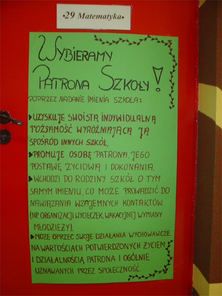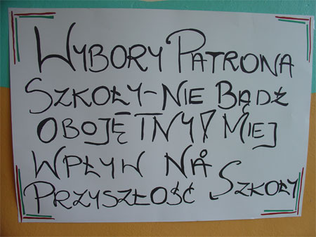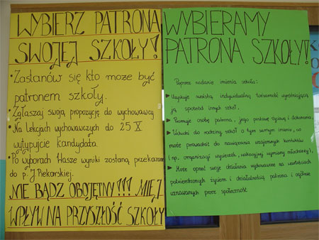 Od początku roku szkolnego w Zespole Szkół Ponadgimnazjalnych trwa akcja wyboru patrona szkoły. Projekt pod nazwą "Nadanie imienia szkole" realizuje cała społeczność szkoły - uczniowie, rodzice i nauczyciele.