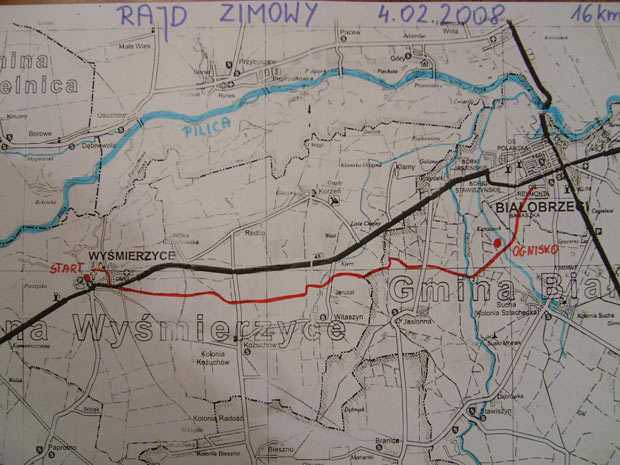 W dniu 4 lutego 2008r. odbył się rajd „My się zimy nie boimy!”, w którym wzięło udział 22 uczniów pod opieką p. W. Ziemnickiej i p. P. Bańkowskiego. Grupa rajdowa wyruszyła szkolnym „lublinem” do Wyśmierzyc. Po zwiedzeniu miasteczka szlak prowadził na tzw. misia lub czuja -„mi się wydaje, że to tędy” lub „czuję, że to ta droga”. Były zanikające drogi polne, świeża oranka, chaszcze, lasy, no i piękne widoki. Pogoda super. Ognisko grzało, dym szczypał, a ziemniaczki się piekły. Czego więcej potrzeba do szczęścia? Do Białobrzegów wróciliśmy po10 godzinach – o 19-tej. My się takiej zimy nie boimy!