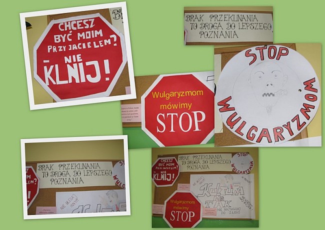 W grudniu i styczniu zajęcia wychowawcze i lekcje języka polskiego poświęcone były kulturze języka i jego zaśmiecaniu przez wulgaryzmy. W czasie trwania dyskusji uczniowie układali hasła, slogany potępiające wulgaryzmy. W wyniku ich pracy powstała gazetka, która wędruje z klasy do klasy. Zobacz galerię zdjęć